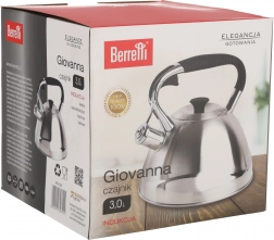 Stylová varná konvice BERRETTI GIOVANNA o objemu 3 l spojuje moderní design se spolehlivou funkčností. Díky povrchu se saténovým leskem, ergonomickému madlu a praktické píšťalce pro signalizaci varu je ideální pro každodenní použití na indukci, plynu, sklokeramice i elektřině.