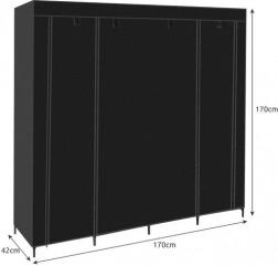 Textilní skříň v rozměrech 170 x 42 x 170 cm představuje ideální řešení pro ty, kteří hledají praktické a přenosné úložné prostory. Díky lehkému materiálu je snadno přemístitelná a skvěle se hodí do prostorů s omezeným místem.