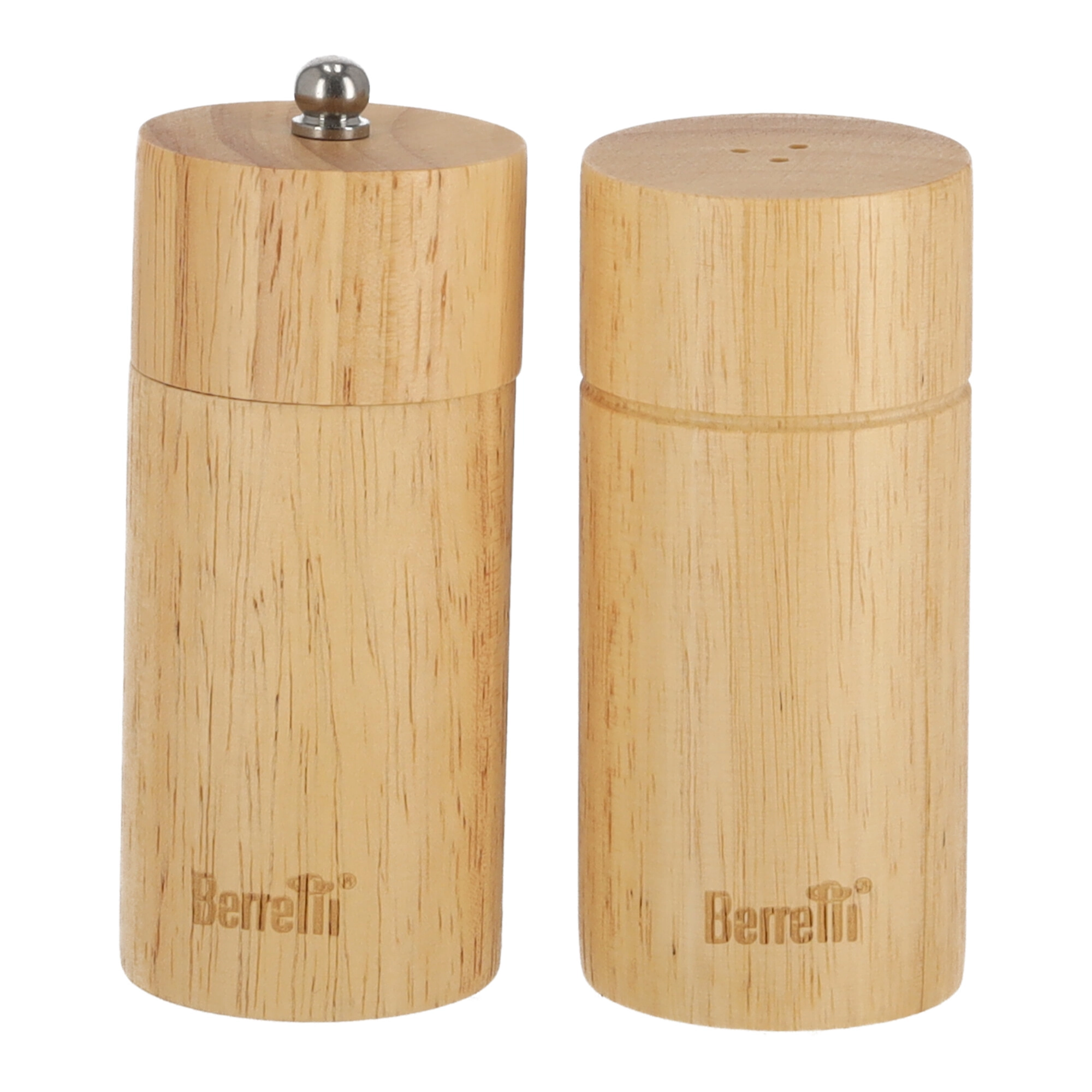Sada BERRETTI přináší přírodní vzhled a funkčnost do každodenního stolování. Robustní dřevo kaučukovníku je odolné a příjemné na dotek, zatímco kompaktní rozměry šetří místo a usnadňují manipulaci. Mlýnek na pepř umožňuje rovnoměrné a přesné mletí, solnička pak pohodlné dávkování soli.