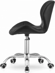 Tato moderní kancelářská židle skvěle zapadne do dětského pokoje, ateliéru, kanceláře i recepce. Čalounění z odolné eko kůže s decentním prošíváním působí elegantně, snadno se čistí a dlouhodobě si zachová vzhled. Pětiramenný chromovaný kříž s pogumovanými kolečky zajišťuje stabilitu a šetrný, tichý pojezd po podlaze.