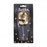 Stylová zlatá párty svíčka ve tvaru čísla 9 dodá vašim narozeninám či jubileu elegantní lesk. Ideální jako dekorace na dort pro děti i dospělé.