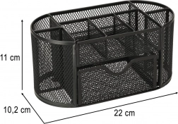 Pevná kovová konstrukce v elegantní černé barvě vydrží každodenní používání. Rozměry organizéru 22 × 11 × 10,2 cm šetří místo na stole.