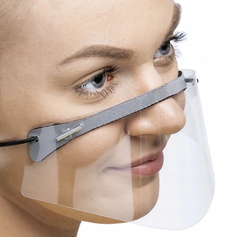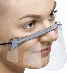 Design s elastickými pásky za uši zajišťuje stabilitu a pohodlí, štít je ultralehký, snadno omyvatelný a dezinfikovatelný. Vhodný pro zaměstnance obchodů, kanceláří, školství, služeb i kurýrů a gastronomii.