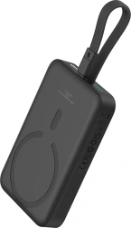 Integrovaný USB‑C kabel slouží dvojímu účelu – nabijete jím telefon i samotnou powerbanku, a po zacvaknutí do portu vytvoří praktické poutko pro nošení. Kompaktní tělo nezasahuje do objektivů fotoaparátu, LED kontrolky ukazují zbývající kapacitu a široká sada bezpečnostních ochran chrání vaše zařízení i vás.