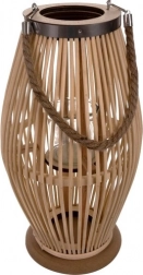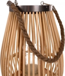 Praktický provazový úchyt je nejen rustikální ozdobou, ale umožňuje snadné přenášení nebo zavěšení lucerny. Úchyt lze odpojit, což zajišťuje flexibilní umístění podle potřeb.
