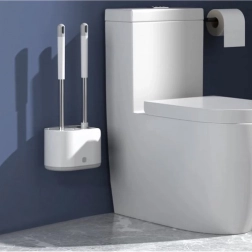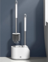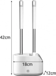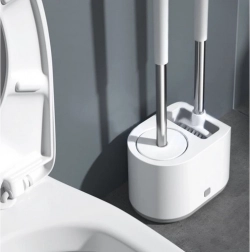 Praktická sada 2 toaletních kartáčů RUHHY pro každodenní čistotu a hygienu. Kombinuje kulatou hlavici z TPR pro šetrné čištění a plochou špičatou hlavici pro rohy a okraje. Díky odkapávací nádobce s tlačítkem a nástěnnému držáku šetří místo a udržuje koupelnu v suchu. Odolné materiály PP, nerezová ocel, TPR a PS zaručují dlouhou životnost.
