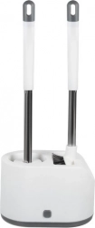 Součástí je uzavřený odkapávač s praktickým tlačítkem pro hygienické vypuštění vody a samolepicí nástěnný držák, který šetří místo na podlaze. Kovové rukojeti z nerezové oceli jsou odolné a snadno se udržují, bílá/šedá barevná kombinace se hodí do každé koupelny.