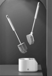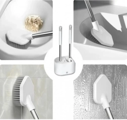 Kulatá TPR hlavice je pružná a šetrná k keramice, plochá trojúhelníková hlavice z PP s ostrou špičkou vyčistí i těžko dostupné rohy a okraje pod lemem mísy.