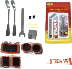 Obsahuje tlapky pro demontáž pneumatik, klíč na kola a další důležité nástroje, které usnadní opravy na cestách.