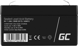 Baterie GREEN CELL 6 V 1,3 Ah je kvalitní akumulátor typu VRLA AGM, ve kterém je elektrolyt vázán ve skleněných separátorech. Díky tomu je odolná proti úniku, může pracovat v libovolné poloze a je ideální jak pro vyrovnávací (standby), tak cyklický provoz.