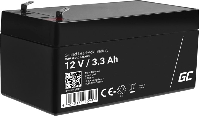 Baterie GREEN CELL 12 V 1,3 Ah využívá technologii AGM, kde je elektrolyt vázán ve skelném vlákně. Díky tomu je těsná, odolná vůči nárazům a poskytuje spolehlivé napájení v široké škále zařízení i poloh. Hodí se pro cyklický provoz (časté nabíjení/vybíjení) i vyrovnávací režim jako záloha při výpadku proudu.
