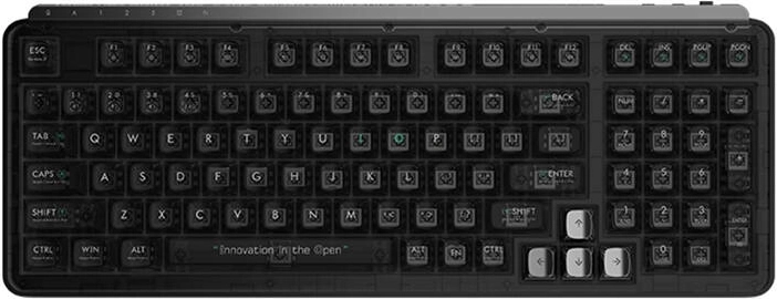 Mechanická klávesnice MIIIW Black 98 spojuje elegantní průhledný vzhled s robustní konstrukcí a špičkovými technologiemi. Transparentní černé tělo z PC a kovové akcenty vytvářejí futuristický vzhled, zatímco 48bitové RGB podsvícení dodá vašemu stolu jedinečnou atmosféru. Díky 98% rozložení získáte kompaktní formát bez kompromisů v počtu kláves.