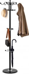 Elegantní stojanový věšák ModernHome je ideální do předsíně, kanceláře i šatny. Nabízí stabilní kovovou konstrukci, těžkou kamennou základnu pro jistotu bez převrácení, celkem 16 háčků pro kabáty, tašky i dětské bundy a praktickou spirálu na deštníky. Moderní design skvěle doplní každý interiér.