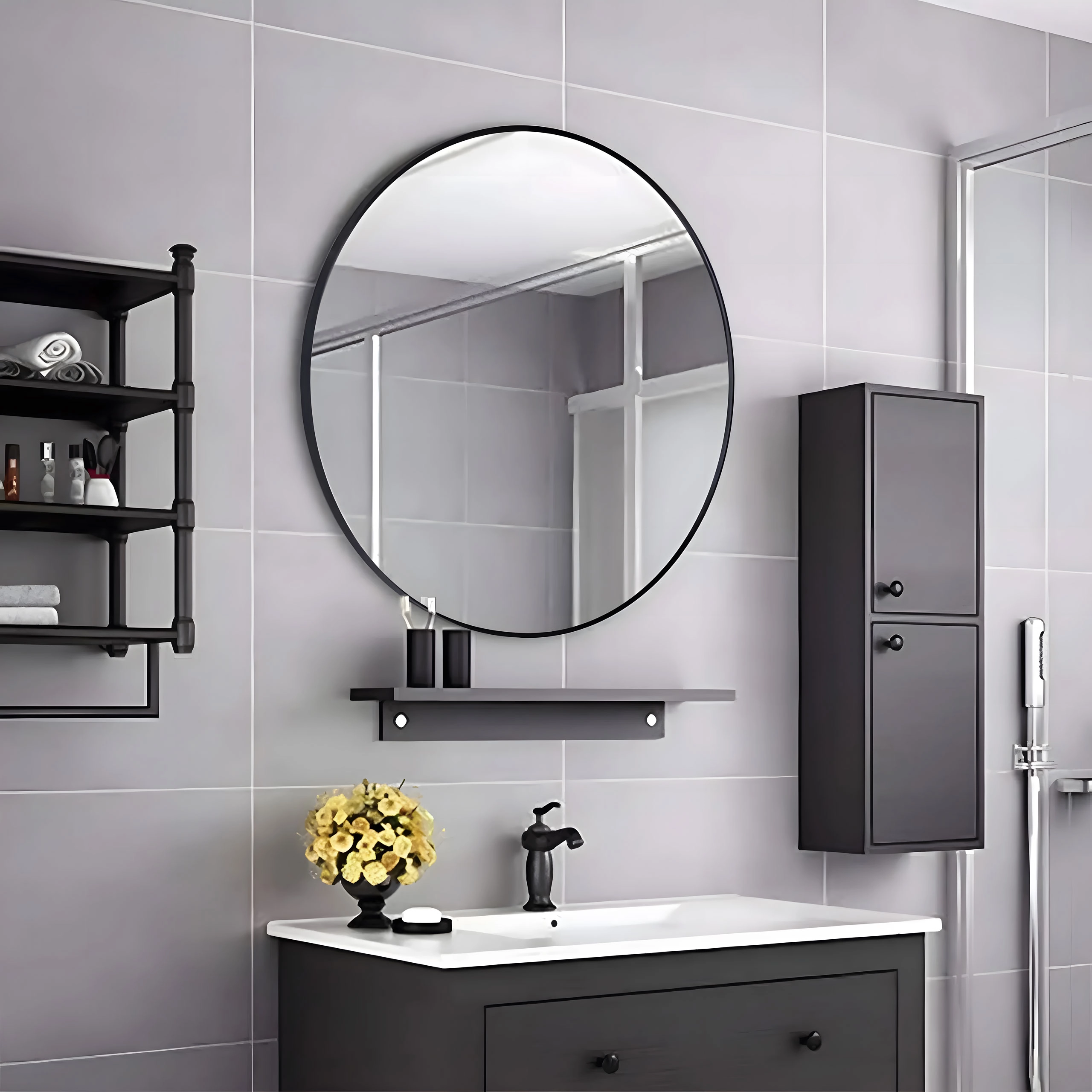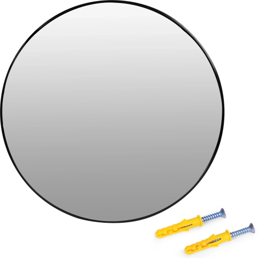 Elegantní kulaté zrcadlo o průměru 80 cm s tenkým černým hliníkovým rámem se skvěle hodí do koupelny, předsíně i šatny. Díky odolné kovové montáži a dodaným hmoždinkám se šrouby jej snadno a bezpečně připevníte na zeď. Moderní design MODERNHOME dodá interiéru nadčasový styl.
