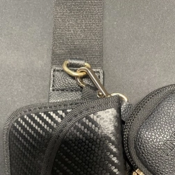 Každé pouzdro má dvě samostatné kapsy – hlubší s kroužkem pro auto klíč (stínící), menší pro platební a přístupové karty. Odolný povrch z PU v karbonovém vzhledu, měkké polstrování z polyesteru a pevný suchý zip chrání obsah před poškozením i náhodným vypadnutím. Sada obsahuje vertikální a horizontální variantu; horizontální verze má navíc zadní úchyt pro připnutí do tašky či batohu.