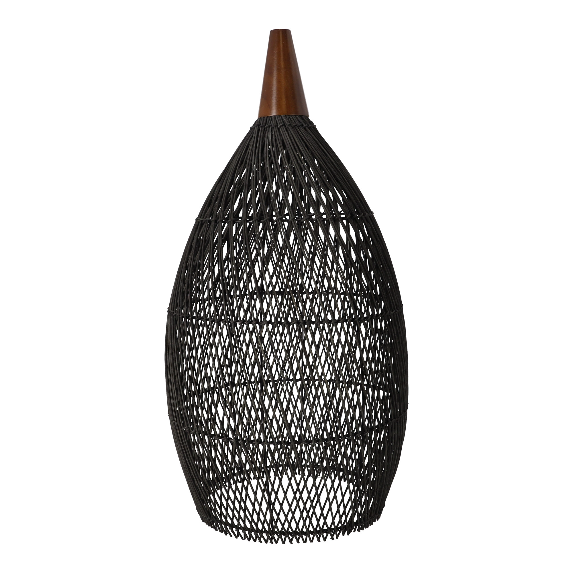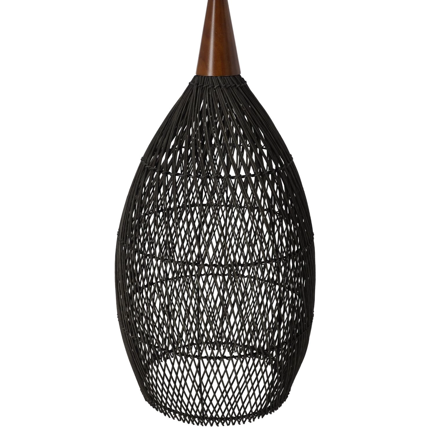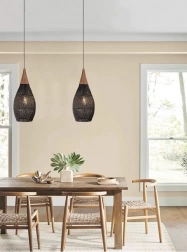 Toto ratanové závěsné svítidlo o průměru 35 cm kombinuje autentickou strukturu přírodního materiálu s moderním černým provedením. Vytváří příjemné, měkké světlo a stává se designovou dominantou nad jídelním stolem, v obýváku i předsíni.