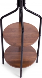 Horní část obsahuje čtyři ramena, která poskytují 8 míst pro zavěšení oděvů. Spodní část je vybavena dvěma funkčními policemi v rustikálním hnědém provedení. Konstrukce je vyrobena z práškově lakovaného kovu a základna z 4 rozšířených nožek, které zajišťují stabilitu i při velkém zatížení. Každá nožka je zakončena podrážkou, která chrání vaši podlahu před poškrábáním.