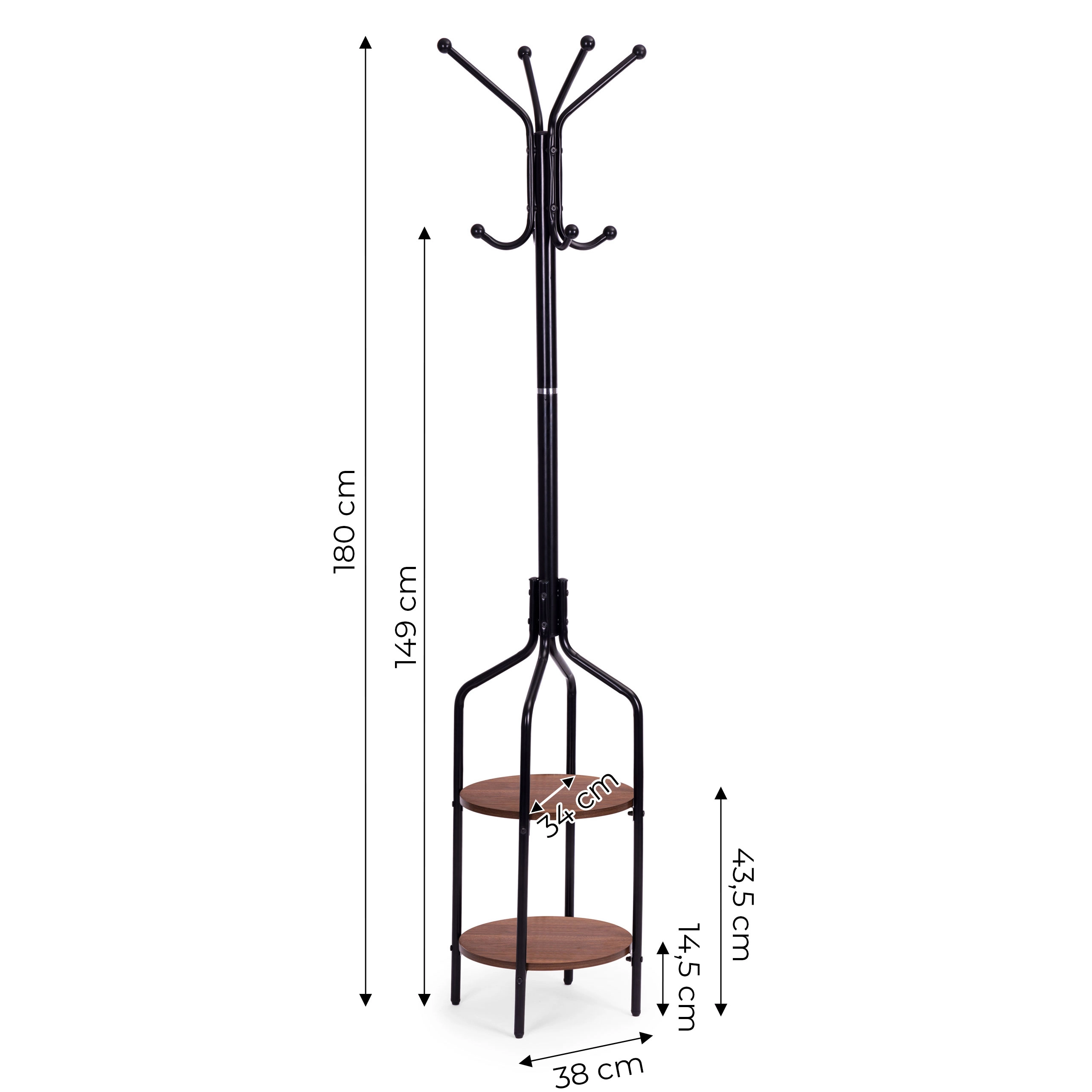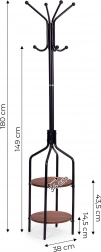 Skvělý doplněk pro každou předsíň, šatní skříň nebo šatnu. Elegantní kombinace černé a rustikální hnědé zajišťuje, že věšák zapadne do jakéhokoli interiéru. Věšák pomáhá udržovat pořádek v šatníku vašich domácích, hostů nebo zákazníků ve vaší firmě.