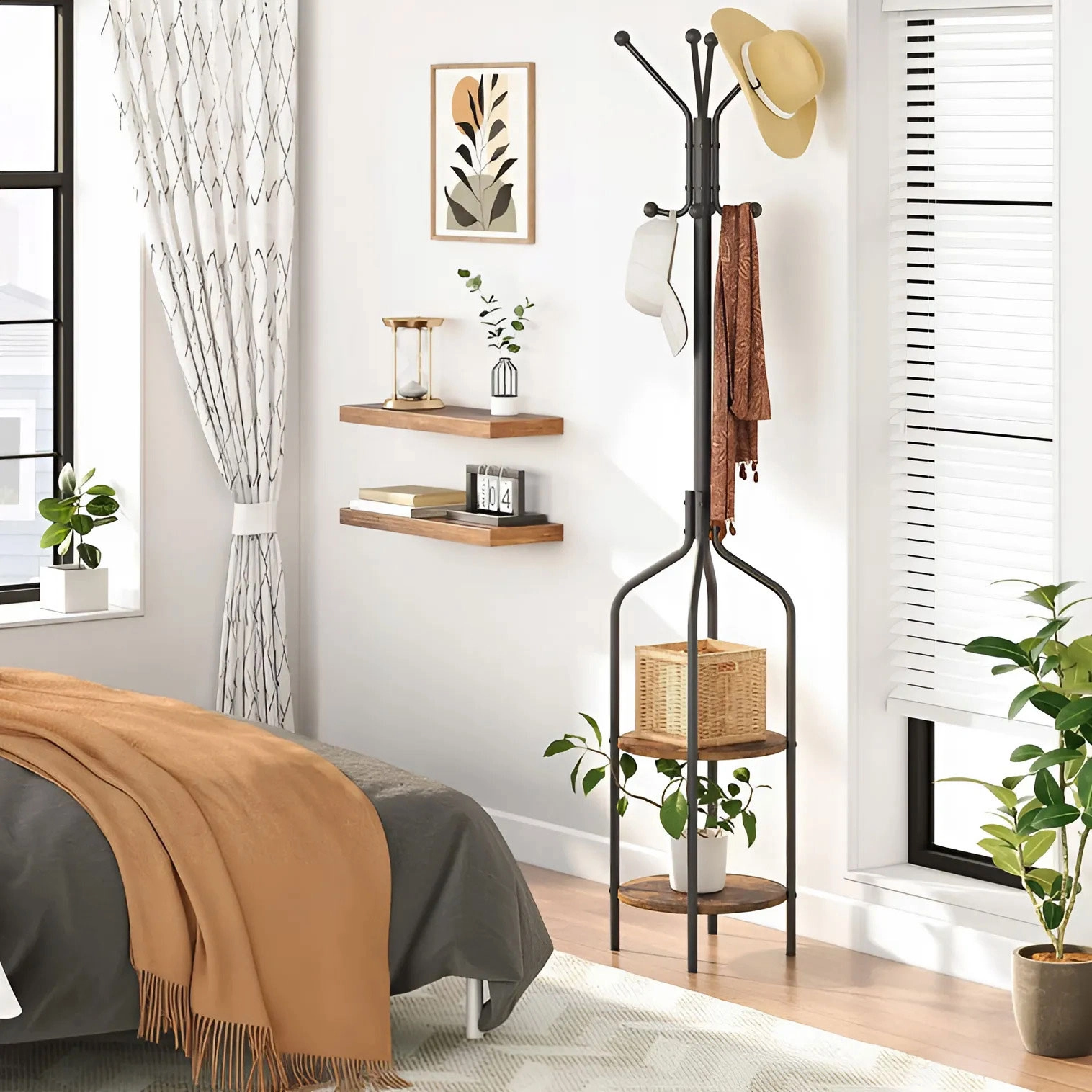Kombinace elegantní černé a rustikální hnědé umožňuje věšáku být stylovým doplňkem pro jakýkoliv interiér.