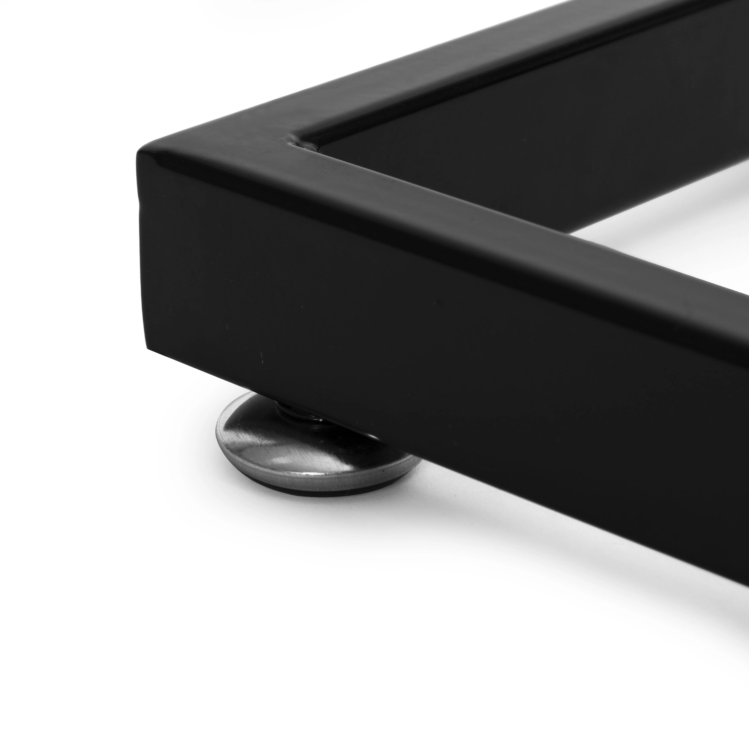 Robustní obdélníková základna z kovových profilů drží věšák stabilní i při plném zatížení. Nastavitelné vyrovnávací nožky chrání podlahy před poškozením a pomohou vyrovnat věšák na nerovném povrchu. Jednoduchý, univerzální design se snadno kombinuje s moderními interiéry.