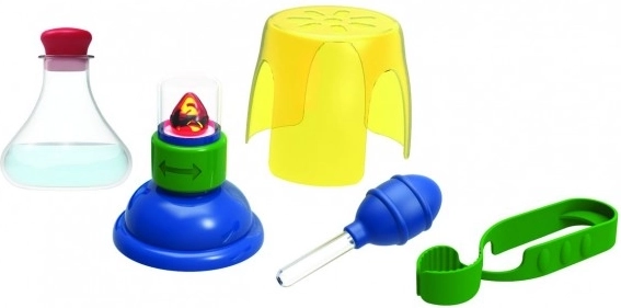 Součástí je předem naplněná a zapečetěná baňka, která simuluje proces zahřívání. Kromě toho sada obsahuje uživatelskou příručku s experimenty, aby děti mohly postupovat krok za krokem. Dále najdete příslušenství jako pipetu, svorku a ochranné brýle pro realistický zážitek.