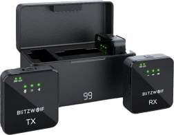 Spolehlivá 2.4G bezdrátová technologie zajišťuje rychlý přenos na vzdálenost přibližně 10–25 m s vysokou odolností vůči rušení. Transmitter vydrží na jedno nabití zhruba 6–8 hodin, přijímač přibližně 8 hodin a praktické nabíjecí pouzdro s kapacitou 1000 mAh prodlouží provoz v terénu; do plna dobijete asi za 2 hodiny.