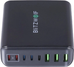BLITZWOLF BW-S26 je kompaktní a výkonná stolní/nástěnná nabíječka s pokročilou GaN technologií pro vyšší účinnost a nižší zahřívání. Díky celkovému výkonu 250 W a 8 portům snadno nabijete více zařízení současně – od ultrabooku přes smartphone až po sluchátka či herní konzoli.