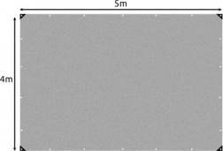 Rohy jsou vyztuženy plastovými protektory a po obvodu jsou nerezová oka Ø 12 mm rozložená cca po 100 cm – u rozměru 4 × 5 m celkem 18 ok. Plachta je oboustranně použitelná a skvěle poslouží jako dočasné zastřešení, ochrana materiálu, zakrytí nákladu či kryt proti povětrnosti.