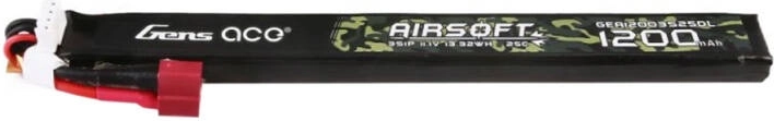 Gens Ace 25C 1200mAh 3S1P 11,1V Airsoft Gun Lipo baterie s T konektorem je speciálně navržena pro napájení replik airsoftových zbraní. S kapacitou 1200 mAh a napětím 11,1 V poskytuje stabilní napájení během dlouhých bitev. Rychlost vybíjení 25C zaručuje spolehlivý výkon i při náročném používání. Ideálně se hodí pro repliky zbraní, které mají větší prostor pro baterii.