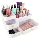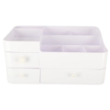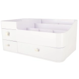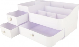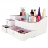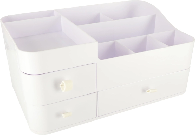 Uspořádejte si denní péči s prostorným organizérem, který kombinuje praktické členění a čistý moderní vzhled. Tři hladce vysouvatelné šuplíky jsou ideální na paletky, vatové tamponky či šperky, zatímco horních sedm přihrádek udrží po ruce štětce, rtěnky, řasenky i flakonky parfémů.