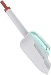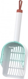 Díky dlouhé rukojeti, která dobře padne do ruky, a tvrdému, pevnému okraji je snadné nabrat stelivo. Lopatka má také malé silikonové madlo pro zavěšení, což šetří místo.