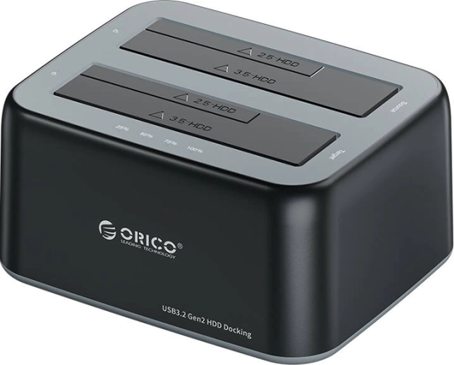 Dokovací stanice Orico umožňuje připojit a spravovat 2.5" i 3.5" HDD/SSD s rychlostí až 10 Gb/s (USB 3.2 Gen 2). Nabízí duální šachtu, funkce UASP, TRIM a SMART pro rychlý a stabilní přenos, of-line klonování disků, napájení 12 V/3 A pro spolehlivý chod a podporu kapacity až 36 TB. Kompatibilní s Windows, macOS, Linux, Android a připravená k použití bez ovladačů.