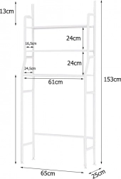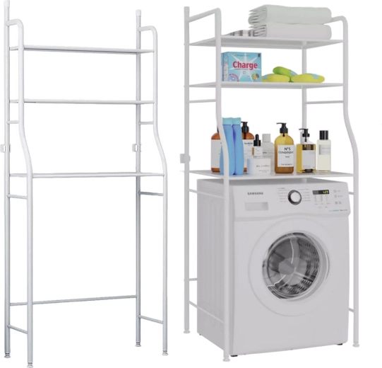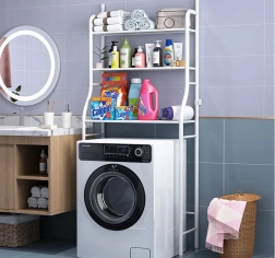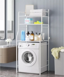 Ušetřete místo a udržte pořádek v koupelně nebo prádelně díky praktické polici nad pračku se třemi stabilními úrovněmi. Poskytuje vertikální úložný prostor pro prací prostředky, ručníky a doplňky, má háčky na zavěšení, držák na toaletní papír a nastavitelné nožky pro lepší stabilitu. Jednoduchá montáž, univerzální rozměry a moderní bílý design skvěle zapadne do každého interiéru.