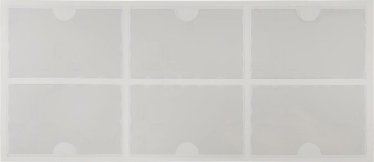Praktické samolepicí kapsy na vizitky s horním vkládáním chrání vaše karty a štítky, mají zadní samolepicí vrstvu pro rychlou instalaci na hladké povrchy a jsou průhledné pro perfektní čitelnost. Dodáváme na archu po 6 ks.