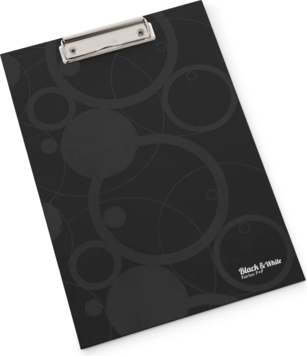 Psací podložka A4 Black and White je elegantní a funkční doplněk pro vaše kancelářské potřeby, vyrobený z extra pevné lepenky s kovovým klipem.