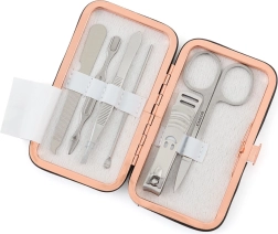 Dopřejte si precizní péči o nehty kdykoliv a kdekoliv s tímto kompaktním a stylovým manikúrním setem. Sada je navržena tak, aby se vešla do každé kabelky, díky čemuž je skvělou volbou pro cestovatelky. Tento elegantní set přináší: