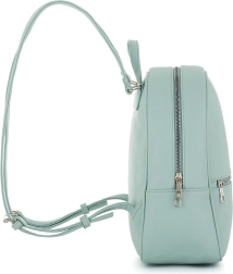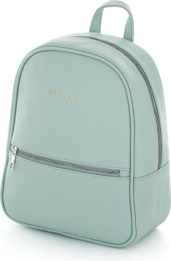 Stylový dámský batoh v barvě máty, ideální pro každodenní použití ve městě i na výletech. Hlavní prostorná kapsa se zavírá na kovový zip, zatímco menší přední kapsa je perfektní na drobnosti. Nastavitelné ramenní popruhy zajišťují pohodlné nošení.