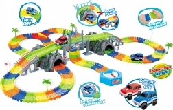 Zábavná a variabilní závodní dráha pro děti od 6 let, kterou lze složit podle vlastní fantazie. Obsahuje 240 dílků, 2 tunely, výhybku, točnu a sadu značek. Součástí jsou 2 auta na baterie (jezdí samy). Baterie 2× AA nejsou součástí.