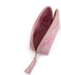 Tato elegantní cestovní kosmetická taška je ideální pro každodenní nošení i víkendové výlety. Kulatý tvar a růžové provedení s mramorovým vzorem z ní dělají vkusný doplněk, který se snadno vejde do kabelky, batohu i příručního zavazadla.