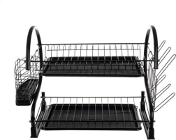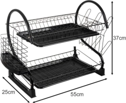 Zažijte revoluci v sušení nádobí s dvouvrstvým odkapávačem Ruhhy, který nabízí pevnou konstrukci z kovu s moderním černým vzhledem. Díky dvouvrstvé konstrukci využijte prostor kuchyně naplno, přičemž horní úroveň je ideální pro 16 talířů, zatímco spodní úroveň je perfektní pro mísy, hrnky a sklenice. Každá vrstva je vybavena vlastním tácem pro zachycení vody.