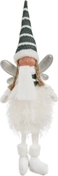 Tato sedící víla propojuje útulný zimní styl a jemný lesk, který rozzáří každý interiér. Díky promyšlenému tvaru s dlouhými nožkami lze figurku bezpečně posadit na okraj poličky, komody, krbu nebo okenního parapetu. Lehoučké a hebké materiály působí příjemně na pohled i dotek, zatímco stříbrná křídla dodávají dekoraci sváteční třpyt.