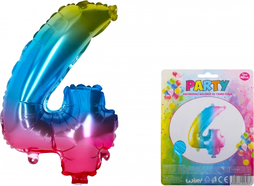 Nafukovací balónek ve tvaru čísla 4 s duhovými barvami je ideální pro narozeninové oslavy.