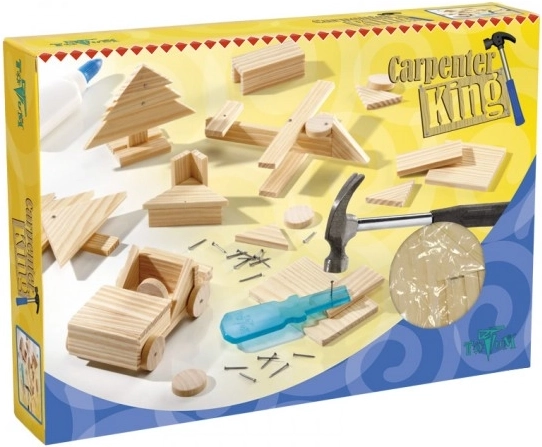 Se sadou Šikovný truhlář si děti bezpečně vyzkouší základní truhlářské dovednosti. Dřevěné dílky lze lepit nebo spojovat hřebíčky a podle kresleného návodu snadno vzniknou první originální výtvory.