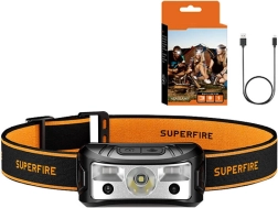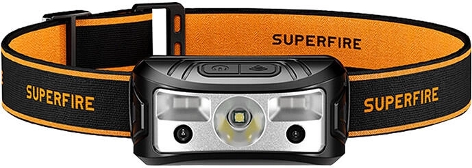 Inteligentní pohybový senzor: Čelovka je vybavena senzorem, který reaguje na pohyb ruky ve vzdálenosti 15 cm, což usnadňuje zapnutí nebo vypnutí světla.