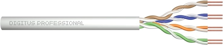 Neekranovaný instalační kabel U/UTP, ideální pro interní telekomunikační a datové sítě, nabízí odolnost a spolehlivost díky PVC plášti a kvalitnímu měděnému drátu.