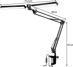 Lampa je vybavena dvojitým zdrojem světla, který můžete nezávisle nastavovat a osvítit tak dvě různá pracoviště současně. Rameno je plně nastavitelné, což zajišťuje vysokou flexibilitu použití.