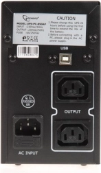Zadní panel obsahuje výstupní zásuvky, AC vstup a USB port. Zařízení nabízí záložní napájení a ochranu proti přepětí.