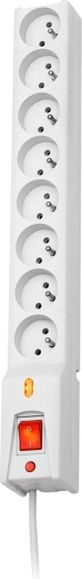 Ergonomický design s bezpečnostním vypínačem zabraňujícím náhodnému vypnutí a umožňujícím bezpečné napájení několika zařízení.