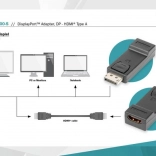 Tento adaptér využívá DisplayPort k HDMI adaptaci, což zajišťuje plynulé a snadné propojení mezi zařízeními.