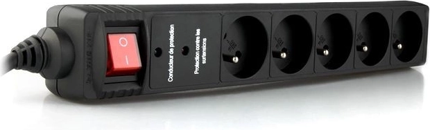Tato praktická černá elektrická lišta s délkou 1,5 metru nabízí pět zásuvek, ideální pro domácí i kancelářské použití.